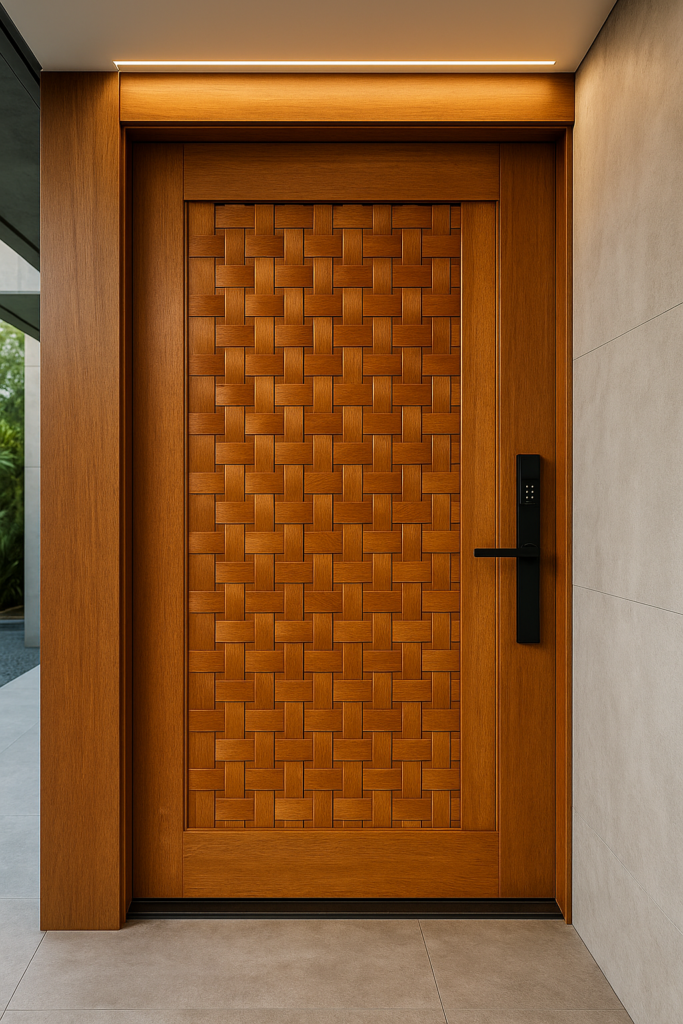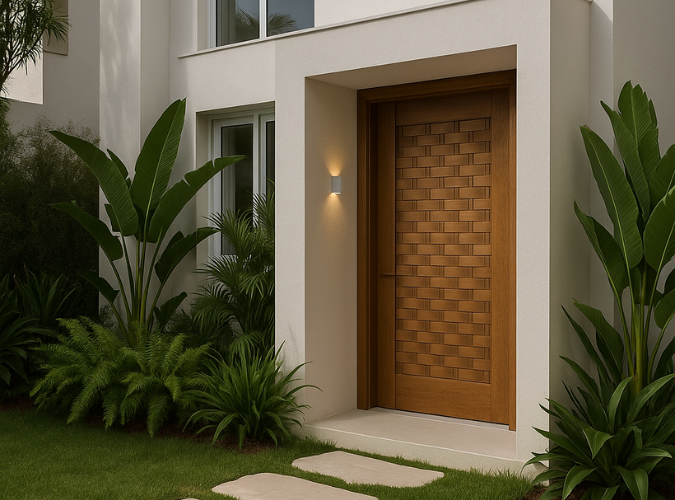 Em 2025, a arquitetura de interiores caminha cada vez mais para a integração visual. Madeira, luz natural, linhas limpas, volumes marcados. Tudo isso exige elementos que não “quebrem” a linguagem estética do projeto. É aí que a porta deixa de ser um mero acesso e passa a ser uma peça de composição.