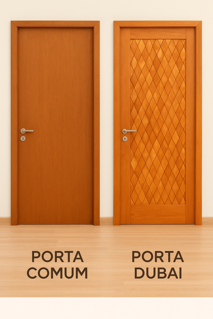 Portas aplicadas, com acabamento profissional e madeira real, não são só mais bonitas, elas representam status, consistência estética e cuidado com os detalhes.