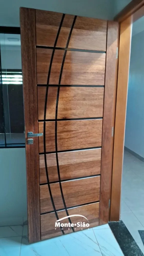 As portas com dobradiça são as mais comuns no mercado. Elas são fixadas ao batente por meio de três ou mais dobradiças metálicas, permitindo a abertura tradicional. São ideais para ambientes internos e externos, e combinam com diferentes estilos de construção.